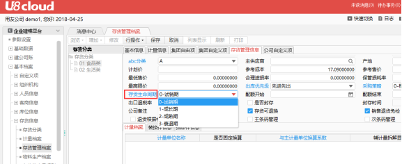 需要进行保质期管理的存货定义该属性,同时定义保质期天数。系统将跟踪存货的保质期进行预警提示。保质期管理的存货必须定义为批次管理。